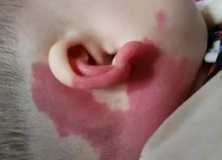 鲜红斑痣:出生时即可见,表现为淡红色至紫红色斑片,边界清晰但形状不规则,常见于头面部、颈部。初期颜色较浅,按压可褪色,随年龄增长可能颜色加深或增厚,形成“葡萄酒色斑”。